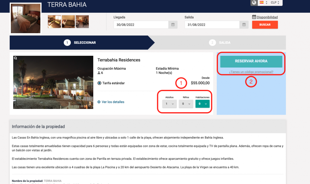 2. Selecciona las personas y habitaciones que deseas reservar y luego presiona «Reservar ahora»