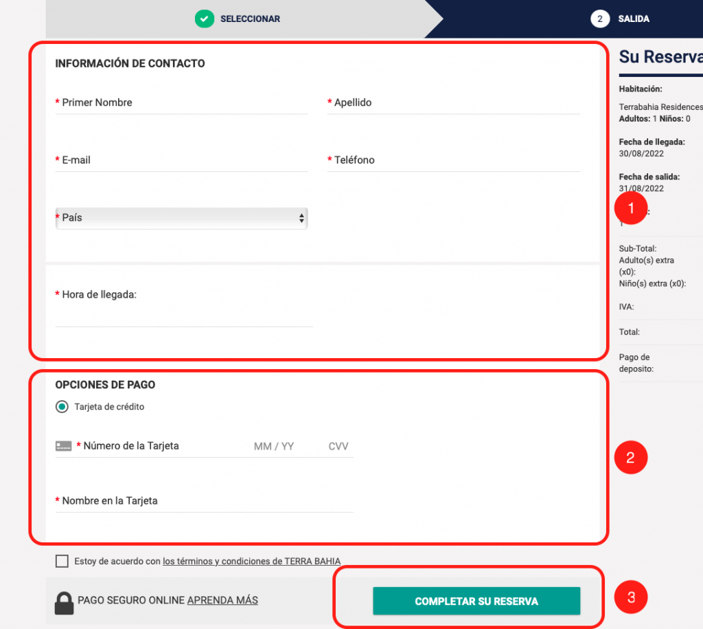 4. Sigue los pasos para realizar tu pago y estará todo listo con tu reserva.